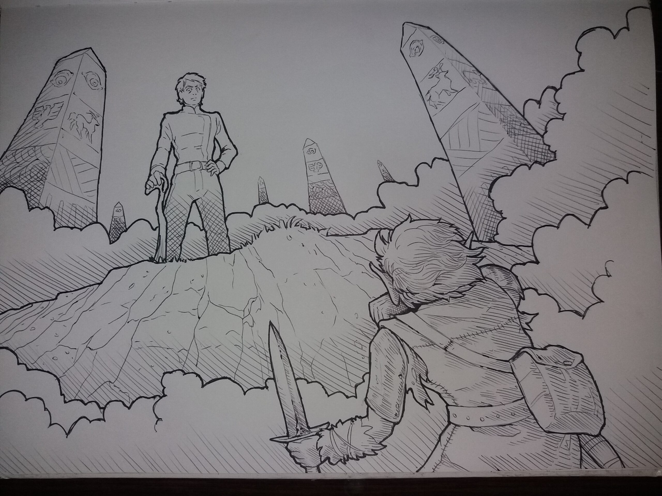 He pointed his sword at her. Maviola was staring at him.