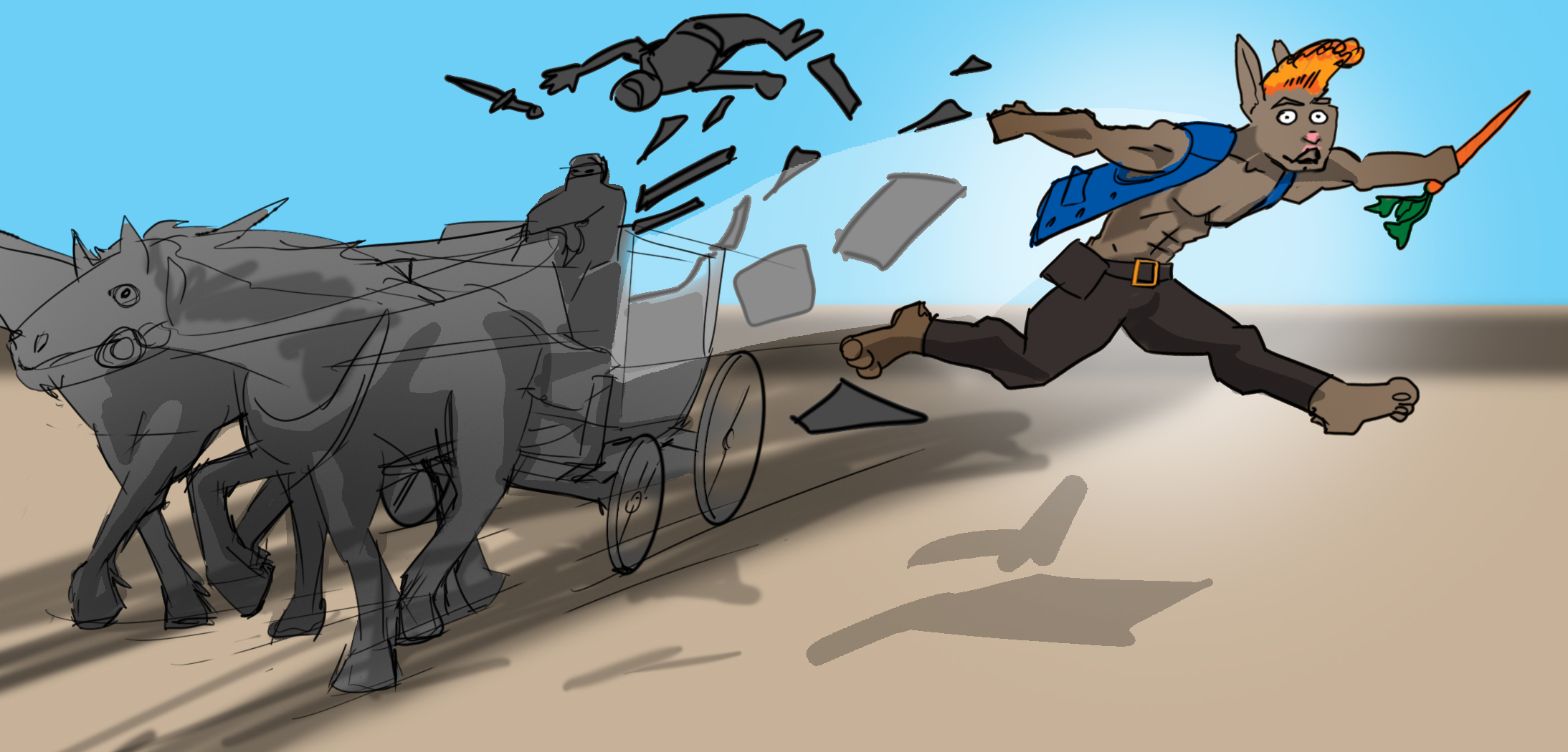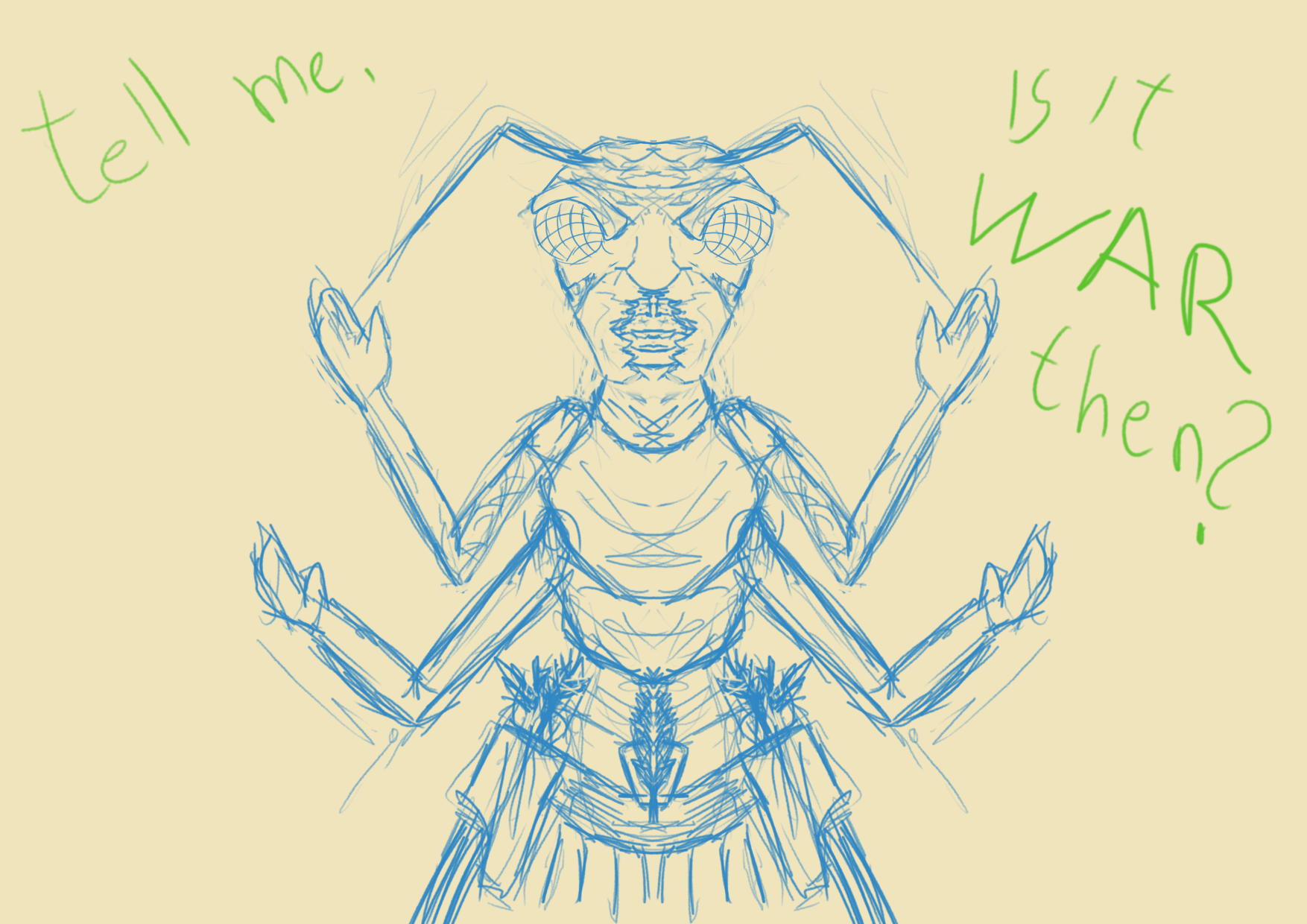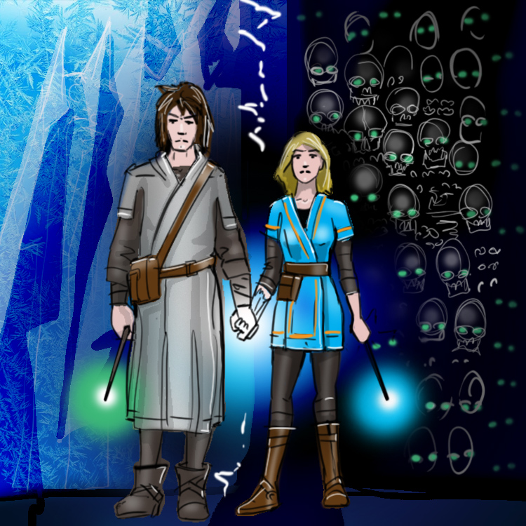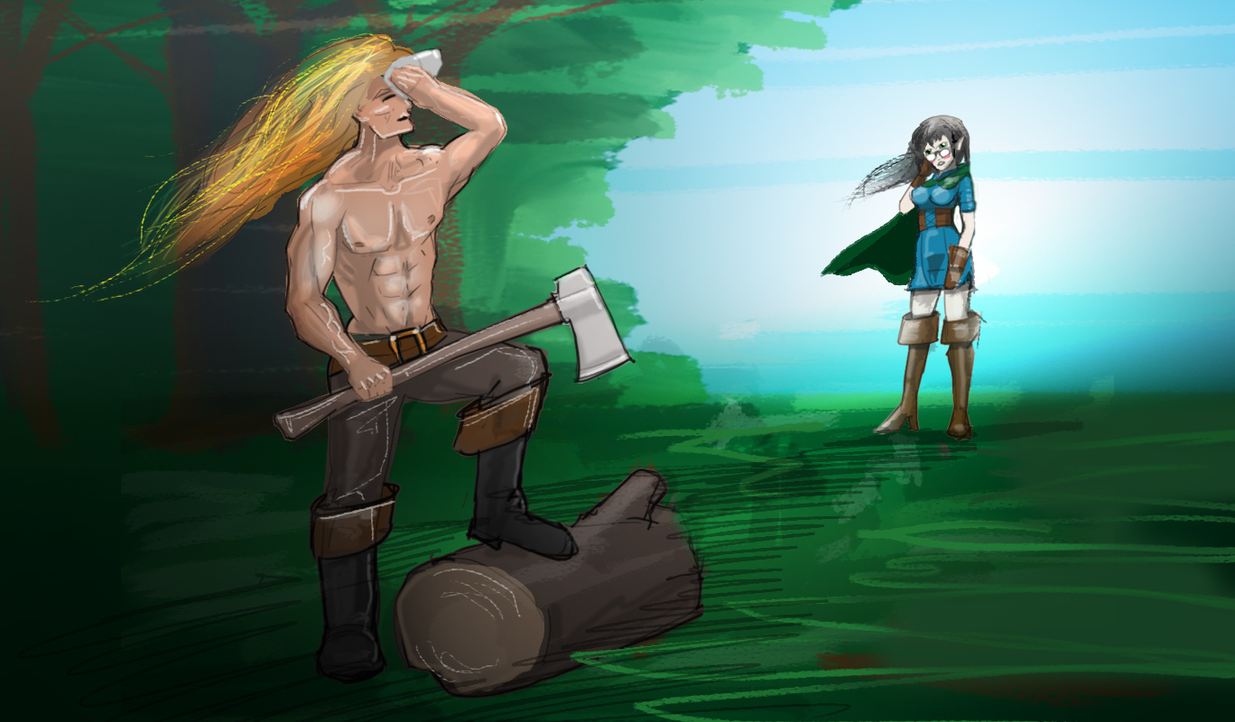 Today’s art is brought to you by ArtsyNada, who I’ve commissioned to do Rasea Zecrew in her poster-recruitment pose! (Artsy has also done other arts, like a kiss between Elirr and Hexel for free! Free!) Also, images of the Walled City and more by mg, and a picture of Laken and Durene by GridCube, among others! Give it appreciation!