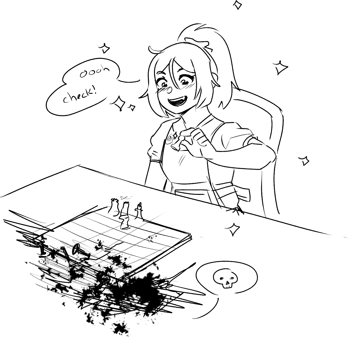 She played two more long games against the Earl and Chaldion and beat both in the next hour. At the same time her mysterious chess opponent did the same.