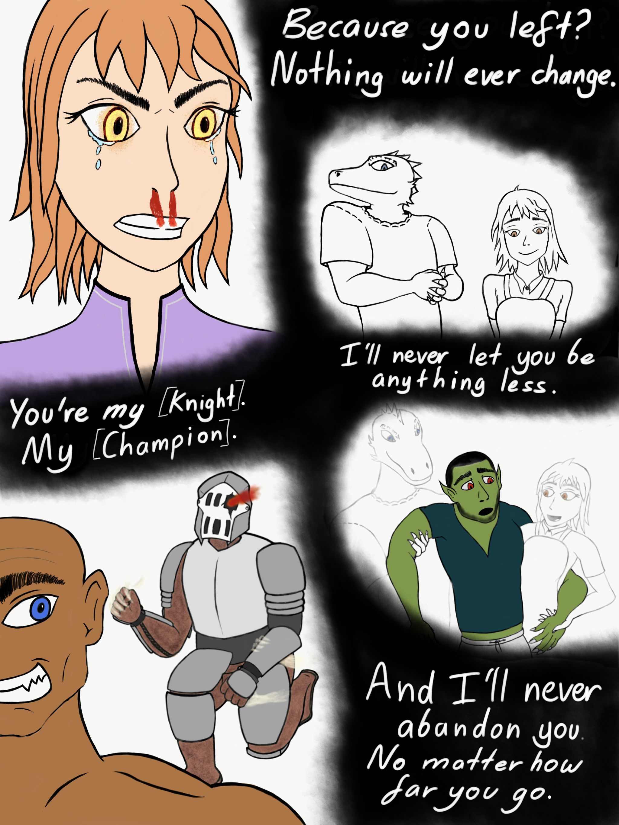 “There is someone who can make your pain go away, Lasica. Not help you deal with it. Not offer you potions or temporary relief. All your agony can be gone. And your husband, likewise. You two can be happy again. And. Your child can return to you.”