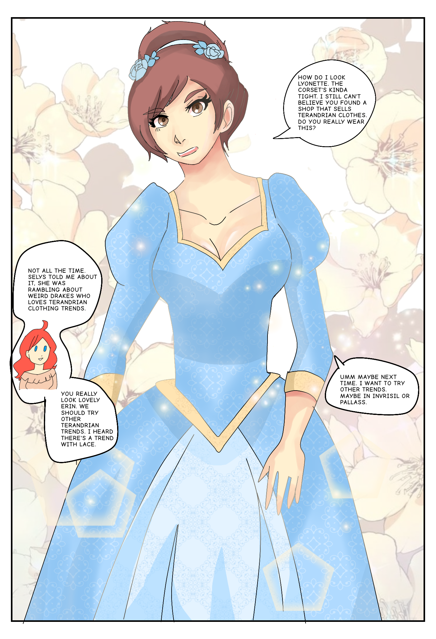 “Those ‘Players of Celum’ are actually performing for the Eternal Throne, you know. They’ve been touring around, and they’re the talk of Terandria. That will be quite fun. At last, I’ll be able to see what the fuss is about. You know, they’re quite rich. Everyone just showers them with gold and attention. They must be better than regular [Bards], musn’t they?”