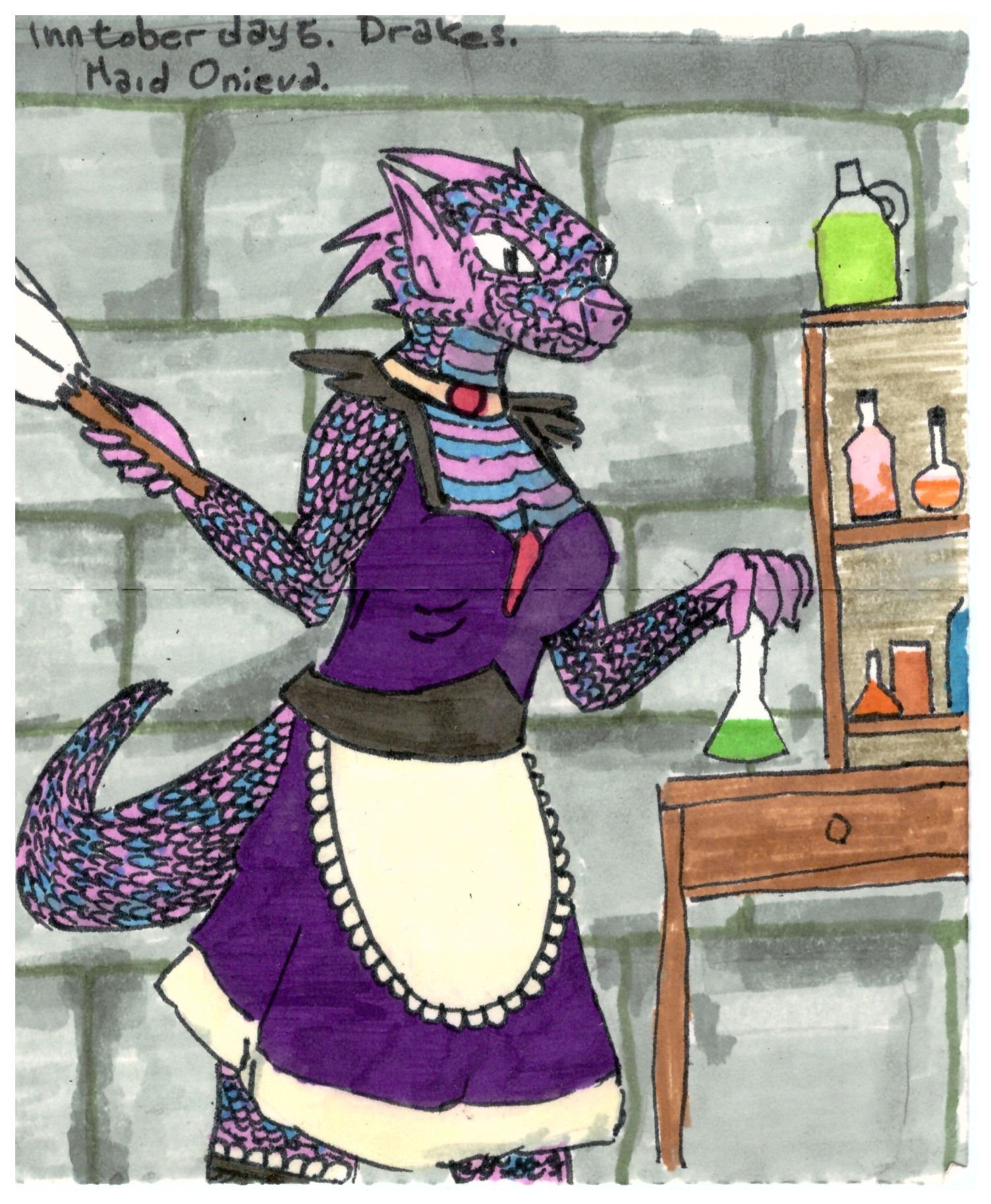 The Drake’s mind was wandering. He absently added some red dust to a film of liquid that had an ocre quality to it already, trying to parse where the dust settled on the already-vibrant mixture.