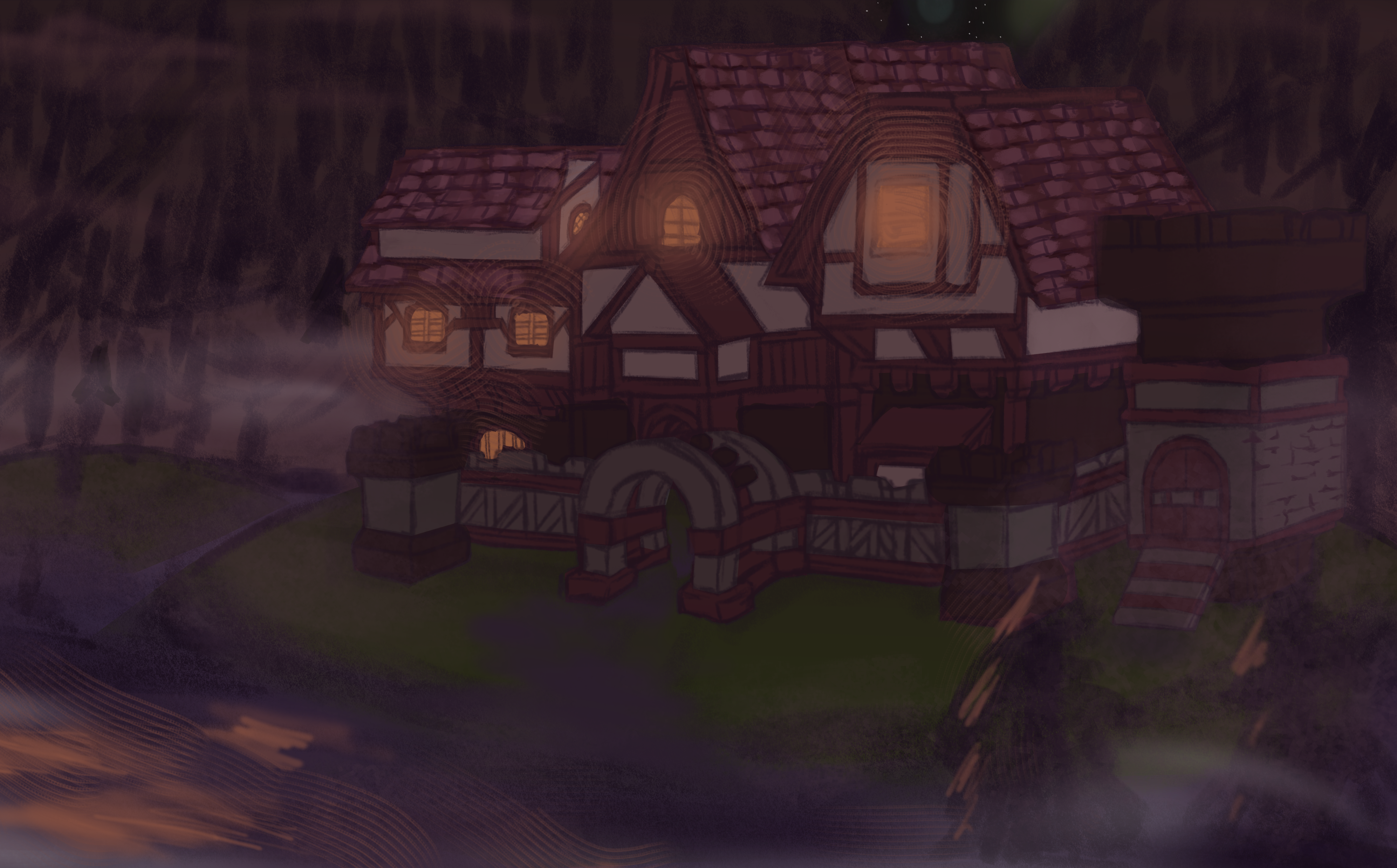 Despite the rain, despite the Floodplains and the relatively barren High Passes…there was a treeline in the distance, wet by the downpour. Lyonette and her company went striding towards it, not over the bridges, but wet grass that seemed to have always been there.
