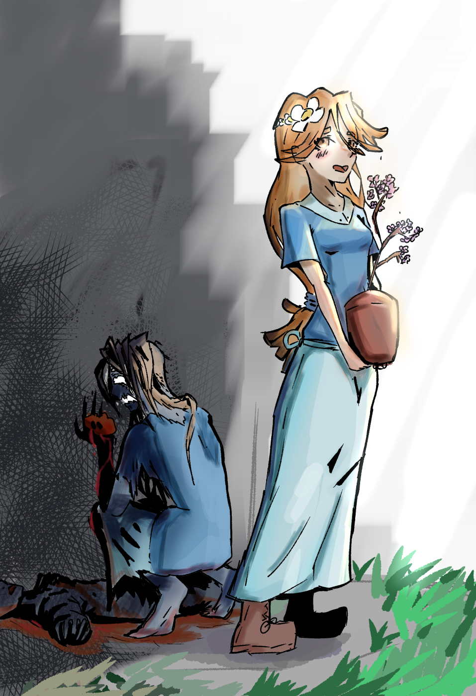 One was being carried through the [Palace of Fates], a red bandage on her side, and the other ran through the [Palace of Fates], trying to save all she could. When the [Fatebreaker Child] looked up, the Maiden met her eyes.