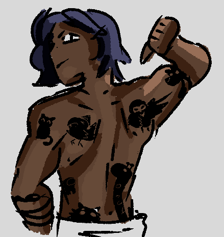 Fifteen more Crelers wiggled out of the gap in the door and leapt on the Painted Soldier. He swung his greatsword, ripping at them with his four hands, trying to get them off—