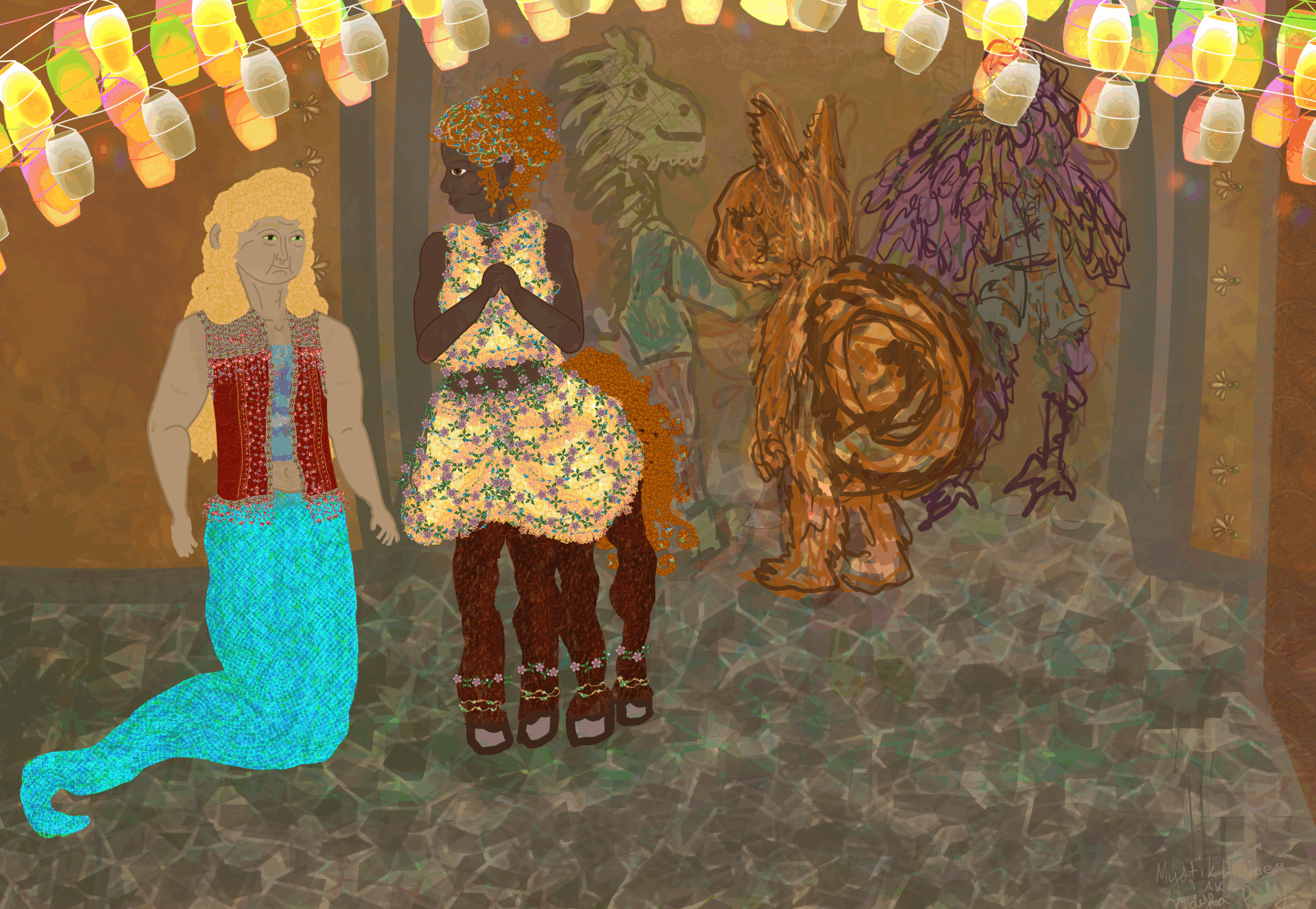 Then a trio of Humans wearing traditional servant’s outfits swept out a side room. All of it made Anama nearly turn around and run, but Jelaqua slung an arm around her shoulder.